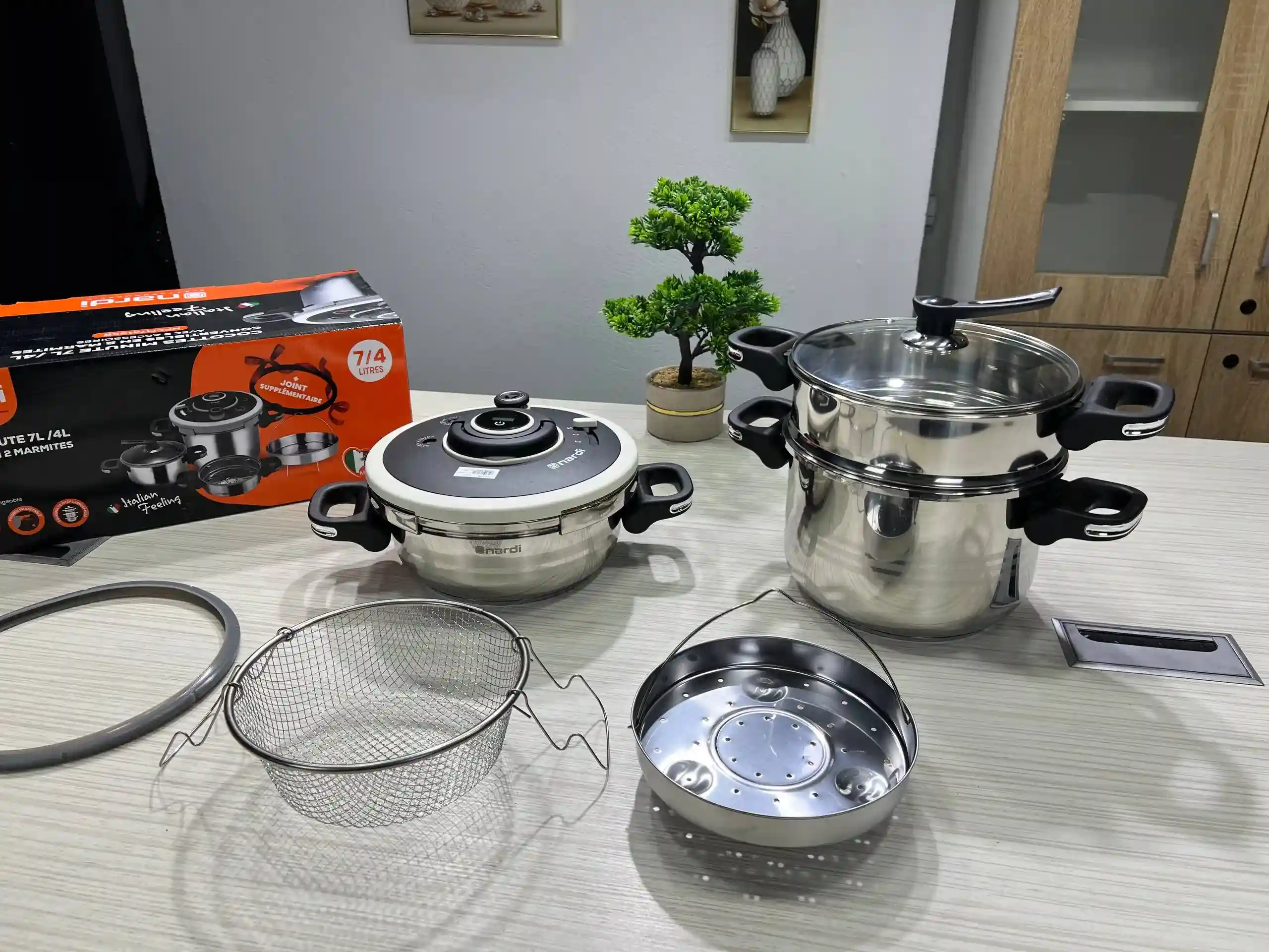 • ⚙️ متعددة الاستخدامات: طبخ، بخار، قلي، كسكسي… كل ذلك في مجموعة واحدة